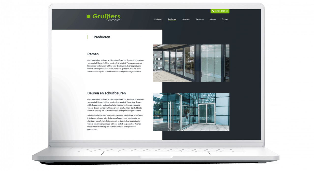 Al sinds 15 jaar zijn wij de vaste partner van Gruijters Aluminium als het gaat om designwerk en webontwikkeling. Dankzij onze langdurige en prettige samenwerking hebben we een goed begrip van de kracht van Gruijters Aluminium, hun onderscheidend vermogen, opdrachtgevers en hoe we het bedrijf het best kunnen profileren. Daarom kregen we de vraag om samen te werken aan een vernieuwde website, waarbij we zorgden voor een modern design en up-to-date inhoud. Ons doel was om een op maat gemaakt ontwerp te creëren dat overzichtelijk, gebruiksvriendelijk en functioneel is.