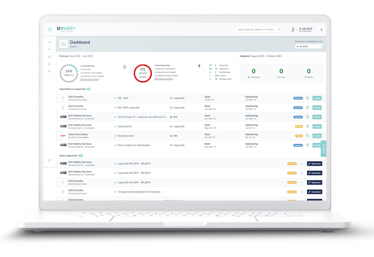 En zo kwamen we na dit prachtige project uit bij een andere applicatie die aan moest sluiten op de tjecco® Compliance, namelijk tjecco® Inspect. Daarin kun je een gebouw visueel in kaart brengen met plattegronden en inspectiepunten om vervolgens uitgebreide rapporten samen te stellen en genereren van de gemaakte inspectie.
